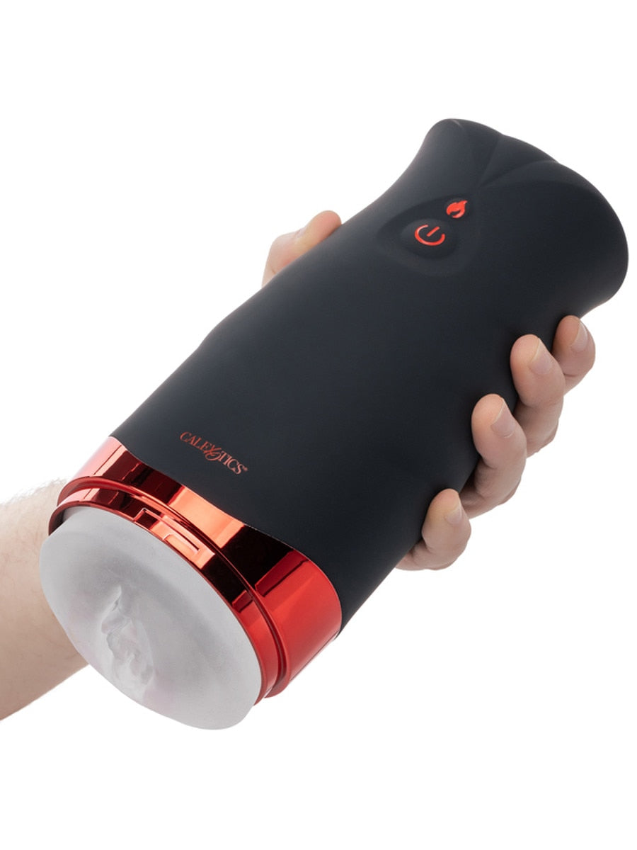 Indulge in an unparalleled solo pleasure experience with the CalExotics Xcess Hot Moaning Pussy Masturbator. This cutting-edge rechargeable stroker immerses you in ultra-realistic sensations, combining powerful vibrations, lifelike warming, and erotic moaning audio for a mind-blowing journey to ecstasy. The ultra-tight, textured sleeve envelops you in thrilling stimulation, while 10 vibration functions deliver toe-curling intensity with every stroke.