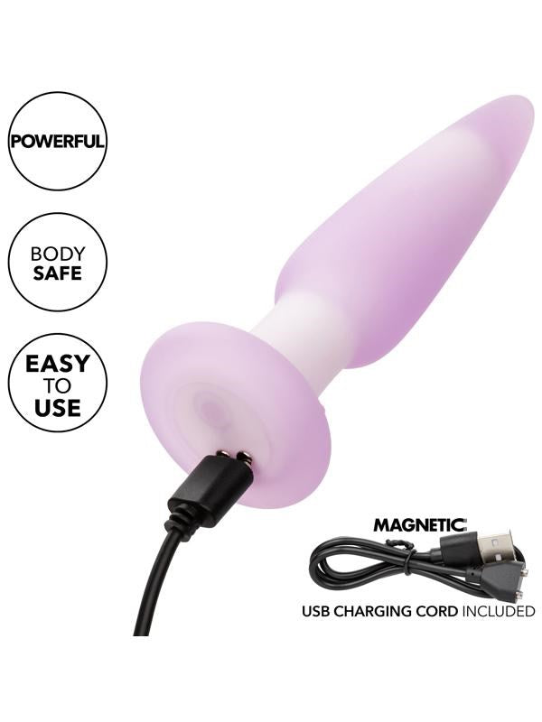 The California Exotics Lavender Haze Slender Silicone Anal Probe features 10 vibration modes, dual-layer liquid silicone construction, and a beginner-friendly tapered design. This waterproof anal probe includes a memory chip for saved settings and travel lock for discretion.