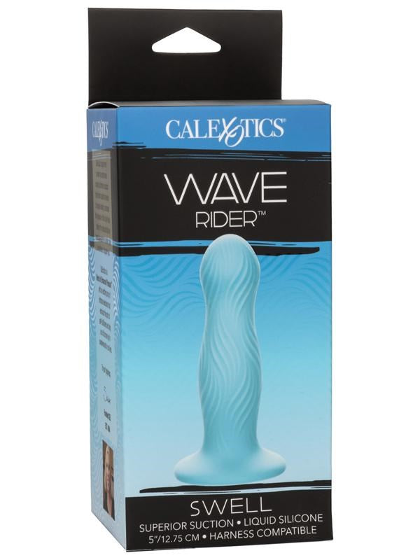 Enhance your intimate moments with the California Exotics Wave Rider Swell, a premium silicone dong featuring a unique wavy texture and a versatile suction cup base for solo or partner play.