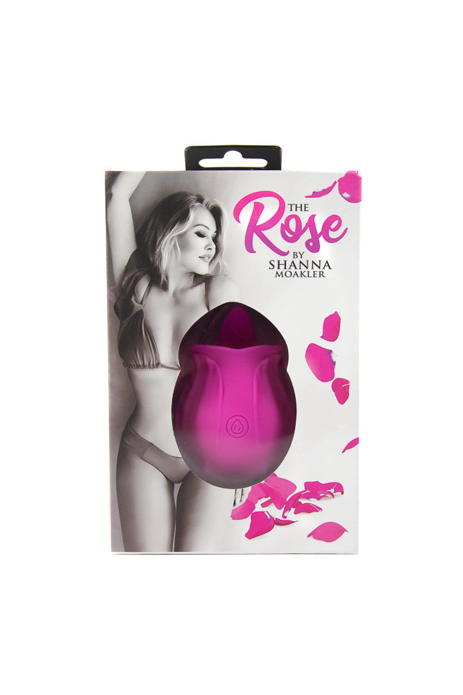 Cousins Group Shanna Moakler The Rose Clitoral Massager is a rechargeable clitoral vibrator designed for external stimulation across all sensitive zones. With three vibration intensities and seven licking patterns, this splash-proof massager combines tongue-flicking sensations with powerful vibrations. One-button control keeps it simple, while 45 minutes of runtime ensures extended pleasure without interruption.