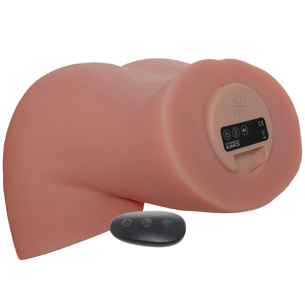 Stroker Kings Asstastic Vibrating Ass and Pussy is a dual-chamber closed-end masturbator with 12 auto-suction modes, 12 vibration patterns, and moaning sounds. Built for intensity, this curved stroker delivers realistic texture and natural suction with every stroke, controlled by buttons or remote.