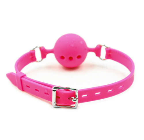 Premium-grade silicone ball gag featuring breathable holes for safety and extended wear. Available in three sizes (3.5cm, 4.5cm, 5cm) with a 55cm adjustable strap. Hypoallergenic, non-porous construction ensures durability and easy maintenance for experienced BDSM enthusiasts.