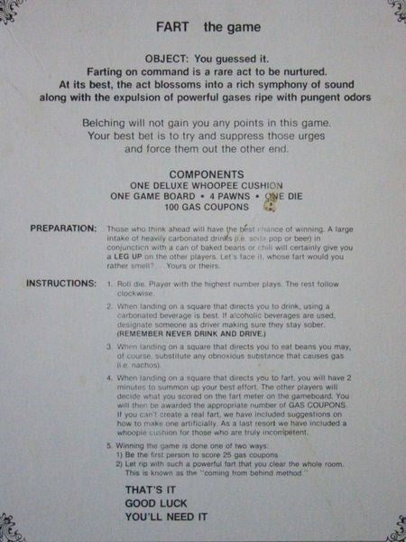 Players embark on a journey around the game board, where strategy meets spontaneity. The primary objective presents two paths to victory: accumulate 25 prestigious gas coupons through successful challenges, or achieve legendary status by producing an emission powerful enough to clear the room. This dual-win condition system ensures that every player has multiple strategies available to pursue victory.