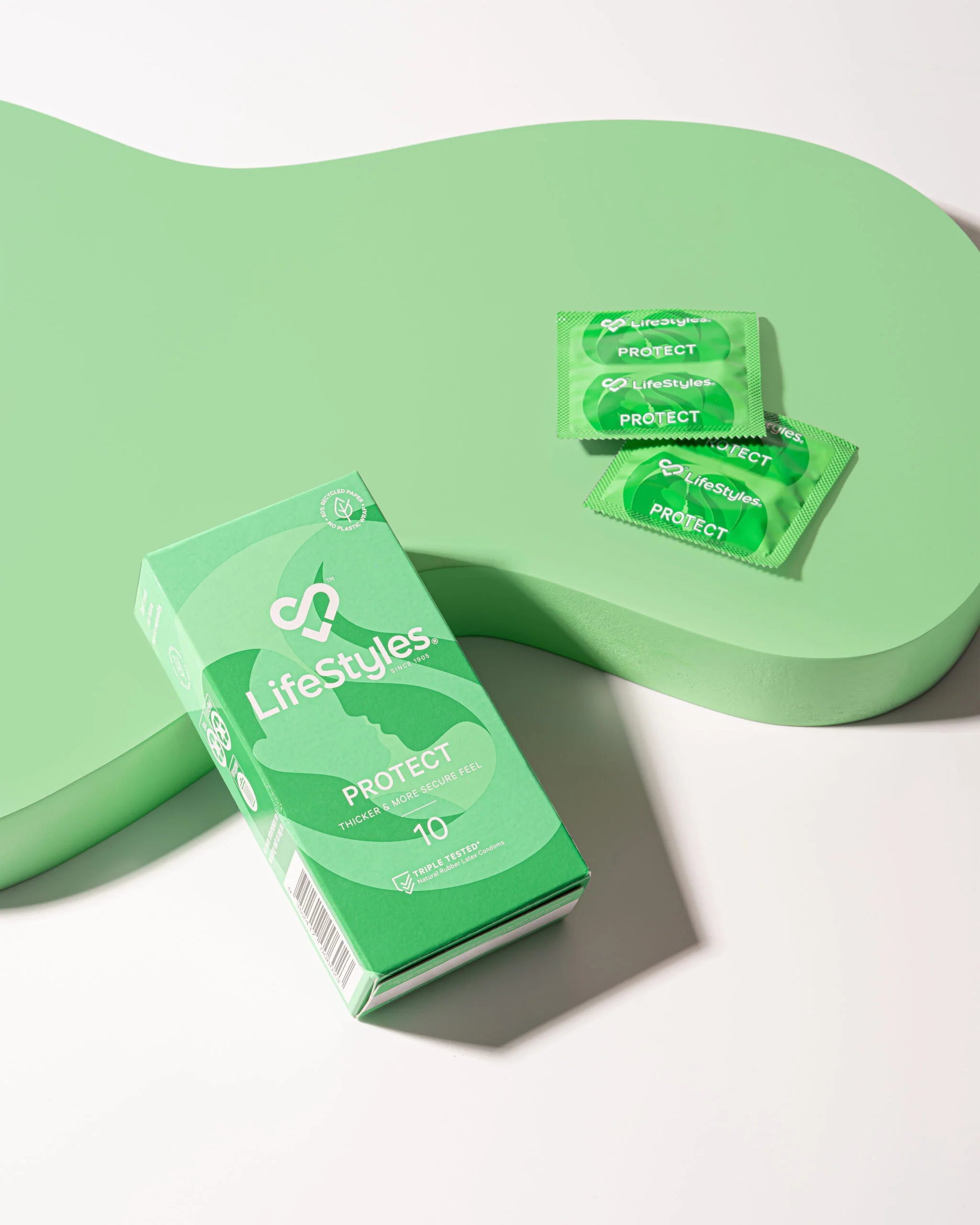LifeStyles Regular Protect condoms feature enhanced latex thickness for increased durability and security, while maintaining sensitivity. This provides additional peace of mind without compromising comfort.