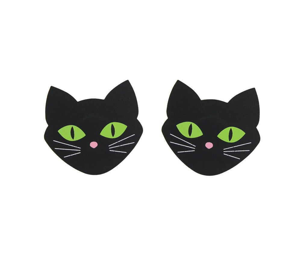 Each pastie features a carefully crafted cat silhouette that celebrates the graceful curves and confident attitude associated with feline beauty. The fabric construction provides a luxurious feel against your skin while maintaining the crisp lines and distinctive shape that make these pasties so visually striking. Whether you're channeling your inner wildcat for a romantic evening, preparing for a themed costume party, or adding feline flair to your lingerie collection, these pasties deliver both comfort and captivating style.