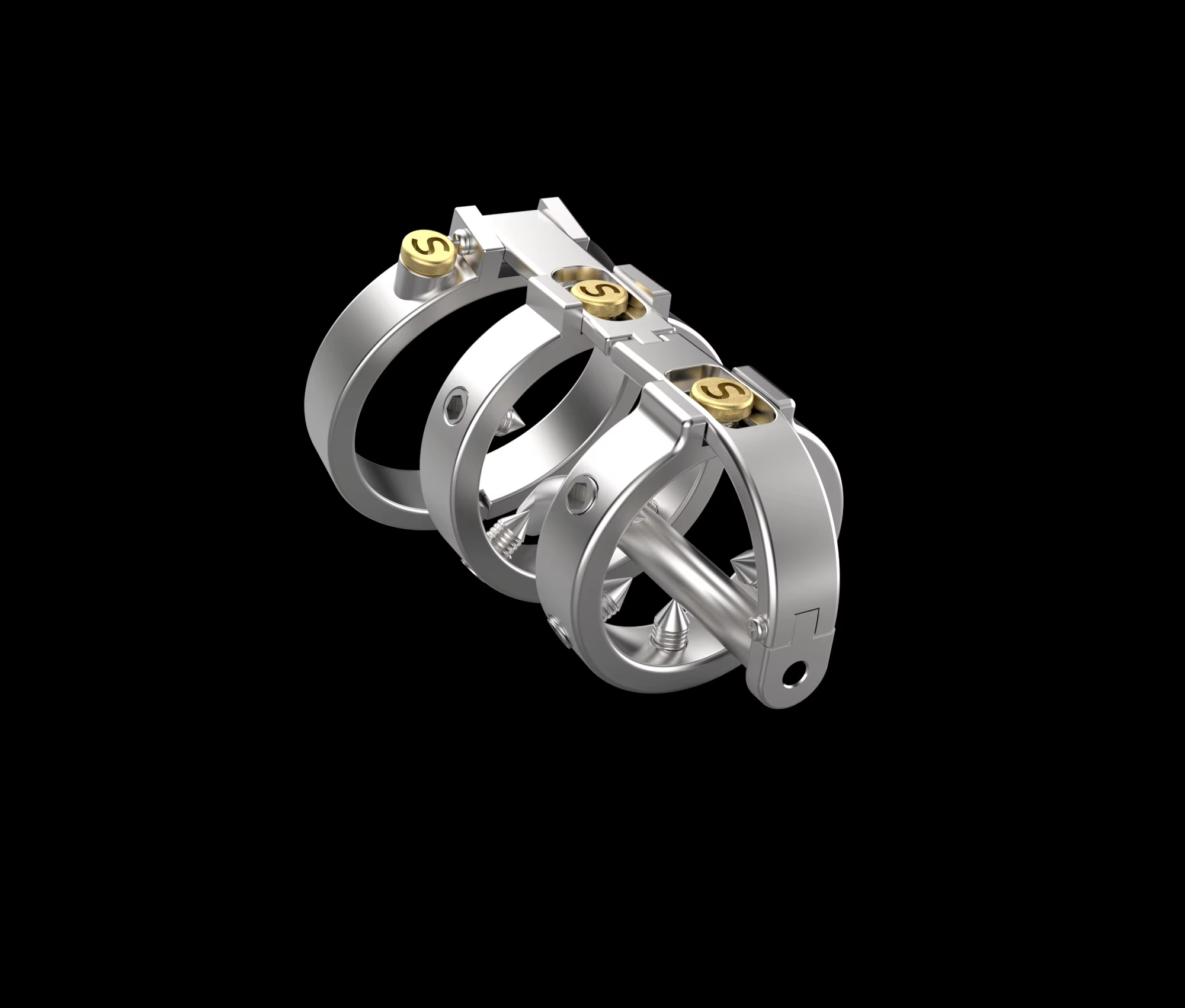 The Mechanical Chastity Cage is a state-of-the-art penis restriction device designed for BDSM male chastity play. This innovative product is made from high-quality surgical steel, ensuring durability and safety. It features an urethral insert that adds an extra layer of control and sensation, heightening the chastity experience. Whether you're exploring male chastity for the first time or a seasoned enthusiast, the Mechanical Chastity Cage offers a secure and customizable solution to enhance your BDSM adventures.