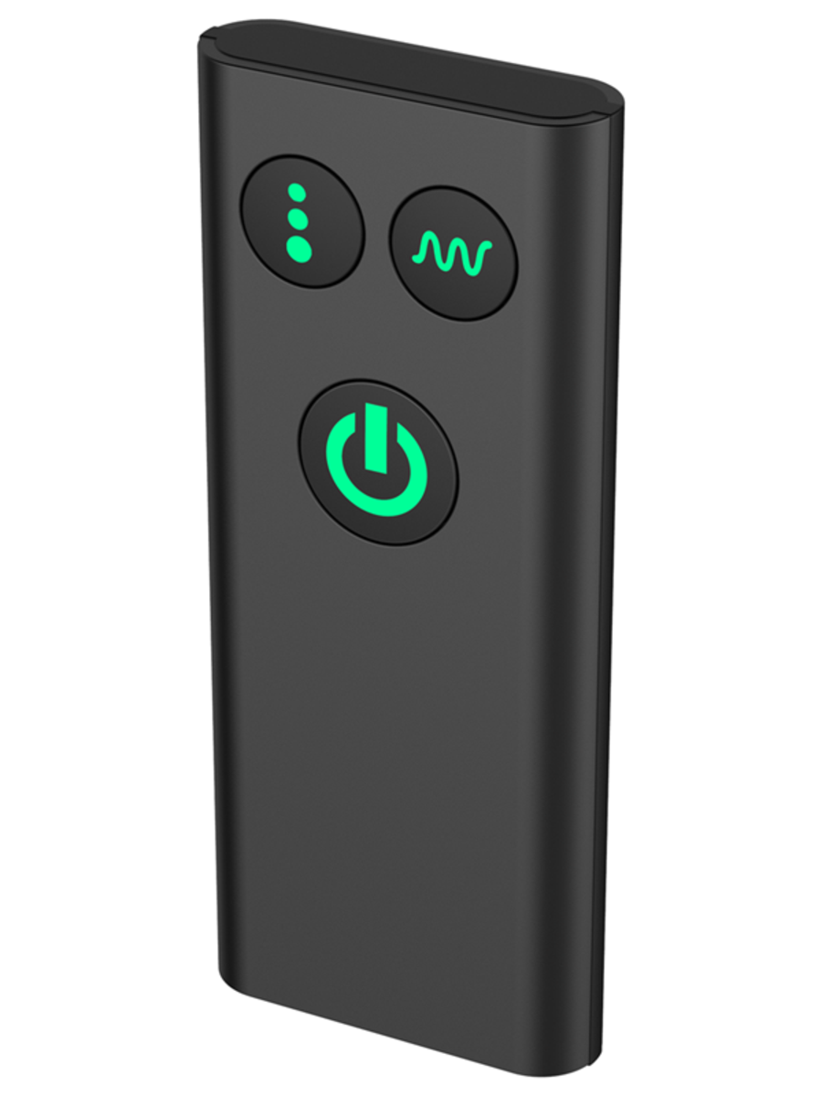 The remote functions up to 8m away, offering hands-free control for solo play or partner interaction during use.