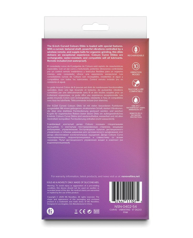 NS Novelties 6 Inches Remote Controlled Vibrating Dildo is a curved silicone vibrator designed for targeted pleasure with wireless control. The curved shaft reaches your preferred angles while textured ridges add sensation. Supple balls at the base provide grinding comfort, and the included remote puts power in your hands from across the room.