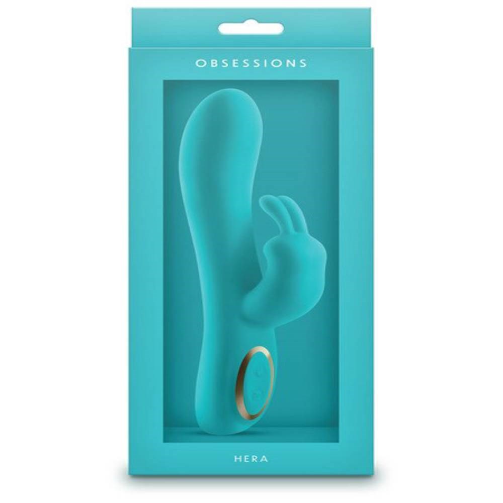 The NS Novelties Obsessions Hera is a premium silicone rabbit vibrator featuring multiple vibration modes, waterproof construction, and rechargeable functionality. Its flexible, curved design delivers targeted dual stimulation through powerful vibrations and body-safe materials.