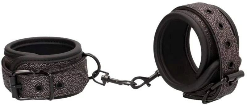 Ouch! Elegant Ankle Cuffs by Shots Toys offer a comfortable and safe bondage experience with adjustable titanium grey – crafted for satisfaction Order discreetly at sex-toy.com.au