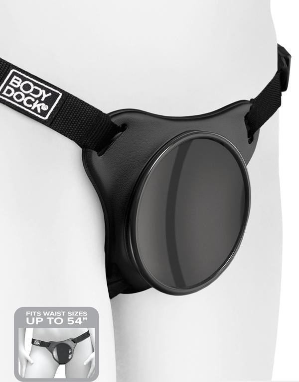 The Pipe dream Body Dock Original Strap On Harness is a revolutionary way to explore foreplay and intimate play. This innovative harness system allows you to easily attach your favorite dildo or vibrator, creating a customizable and hands-free strap-on experience. Its patented suction-based design eliminates the need for rings or snaps, making it a hassle-free and versatile option for solo or couple's use.