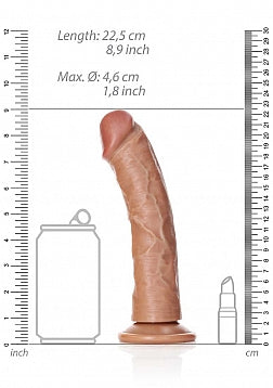 The Realrock Curved Suction Cup Realistic Dong 20.5 cm features lifelike veins, a G-spot-friendly curve, and a secure suction cup base. Made from body-safe PVC for satisfying solo or harness play.