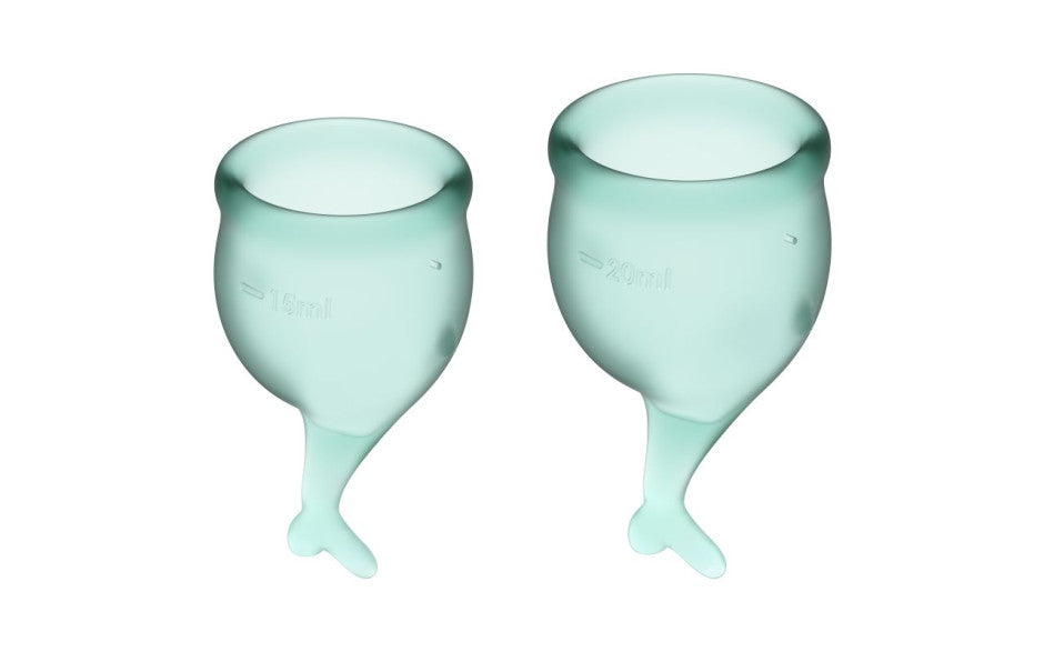 The Satisfyer Feel Secure Menstrual Cups are made from high-quality, medical-grade silicone that is soft, smooth, and extremely hygienic. The silicone material is flexible, allowing the cups to adapt to the contours of your body for a secure and comfortable fit. The cups are designed with attention to detail, ensuring a durable and long-lasting product that can withstand regular use. The practical handle with the whale design is a thoughtful addition, making the cups easy to grip and manipulate during insertion and removal.