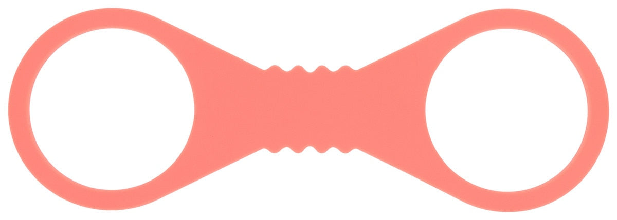 Seamless silicone loops stretch wide for easy entry then snap back to lock limbs. No hardware means zero pinches or key fumbles. Small cuffs fit most wrists; large hug ankles without cutting circulation. Interlocking design creates hog-tie in seconds—just thread one through the other. Explore the full bondage and fetish gear range now online. Waterproof seal survives showers or spills. Peach tone flatters skin under any light. Ultra-lightweight—under 100 grams per pair. Non-porous surface wipes clean with one swipe.