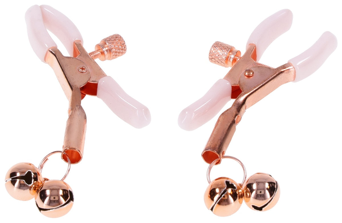 These clamps are perfect for incorporating into a wide range of sensory play scenarios, from light nipple teasing to more intense BDSM sessions. The dangling bells serve as a constant reminder of your submission, providing a delightful audible cue with every movement. Whether you're engaging in solo self-discovery or exploring power exchange with a partner, these clamps are sure to become a cherished addition to your toy collection.