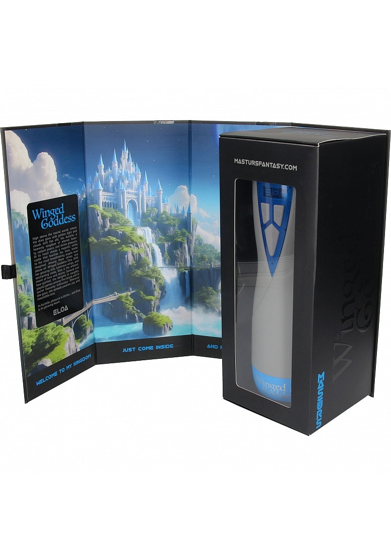 Shots Masturs Eloa Winged Goddess Vibrating Male Masturbator is a fantasy-driven stroker combining dual motors with 9 speed modes for customizable pleasure. Two distinct vibration patterns pulse through a textured tunnel, while the themed design and AR experience create immersive sensations beyond basic stroking alone.