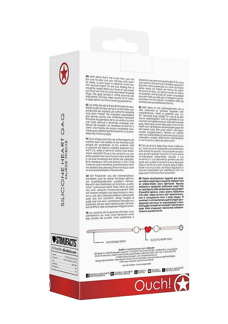 Shots Toys Nurse Theme BDSM Silicone Heart Gag is a restraint accessory designed for roleplay and sensation play. The heart-shaped silicone gag combines fantasy appeal with practical functionality, featuring an adjustable stainless steel buckle and waterproof construction for reliable use across different scenarios.