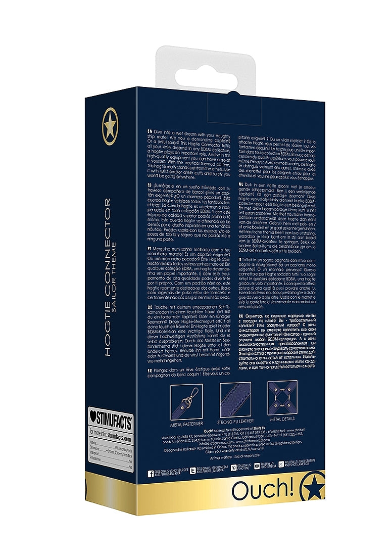 Shots Toys Sailor Theme BDSM Hogtie Connector is a premium restraint system designed for partner bondage and position control. This nautical-themed connector bridges wrist and ankle cuffs, enabling full-body immobilization with distinctive style. The waterproof PU straps and zinc alloy hardware deliver durability for intense scenes.
