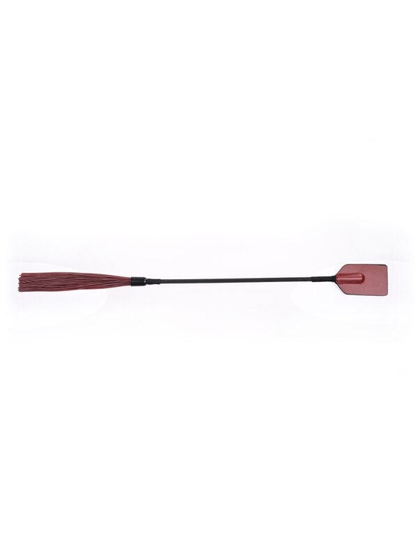 Premium 22-inch dual-ended implement featuring a precision crop and soft flogger falls. Crafted from high-grade faux leather in black and red, offering versatile sensation play with balanced weight distribution and ergonomic control.