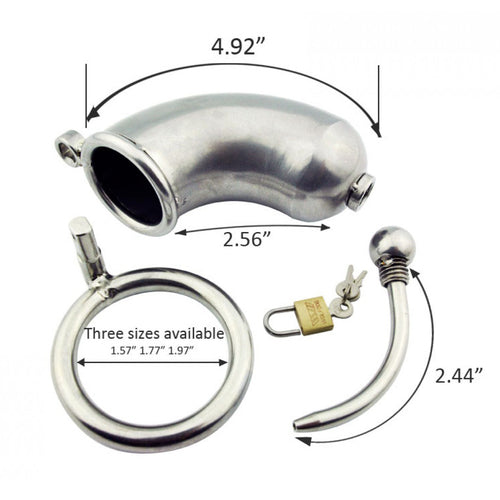 The Tin Man Cock Cage is a revolutionary male chastity device that combines the thrill of power exchange with the sensations of intimate pleasure. Crafted from high-quality steel, this innovative cage locks away your desires, putting you in the hands of your partner. Featuring a removable urethral sound, the Tin Man Cock Cage offers a unique and customizable experience, catering to a wide range of kinks and fetishes. Whether you're exploring the depths of dominance and submission or simply seeking to heighten your intimate experiences, this chastity device is designed to push the boundaries of pleasure and control.