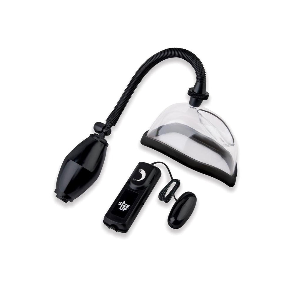 This pump system pairs traditional suction mechanics with modern vibration technology. The clear chambers give you complete visibility during use, while the included remote-controlled vibrating bullet adds targeted stimulation you can control independently. The one-handed grip means you stay comfortable throughout your session.